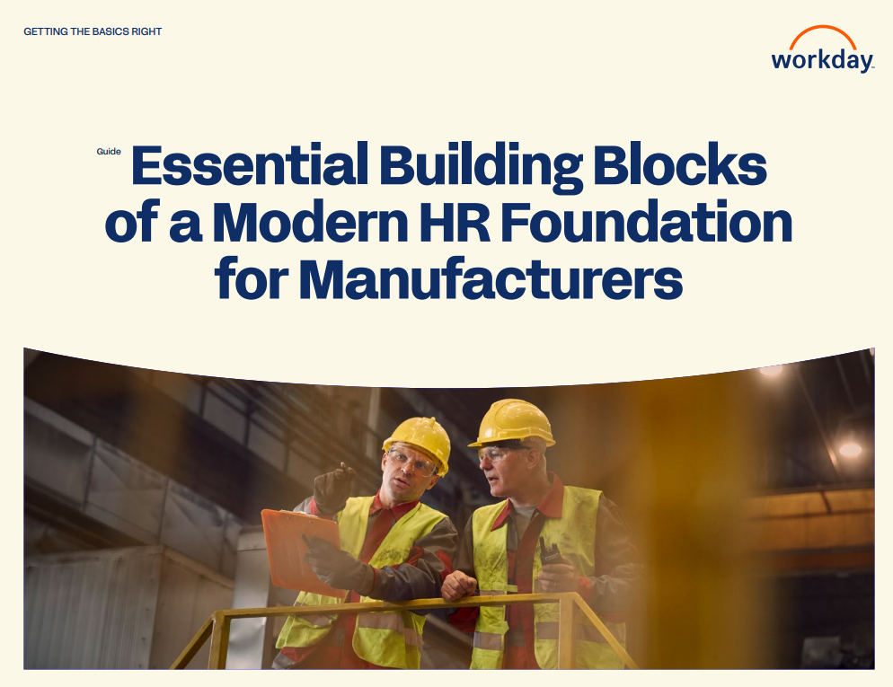Building Blocks of a Modern HR Foundation for Manufacturers Discover how Workday natively connects every stage of the workforce lifecycle,