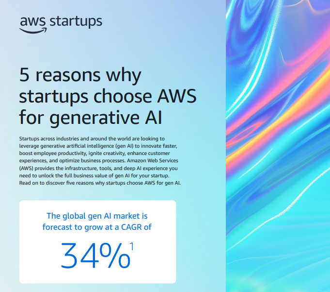 5 reasons why startups choose AWS for generative AI This business infographic, meant for startup founders and decision makers, presents
