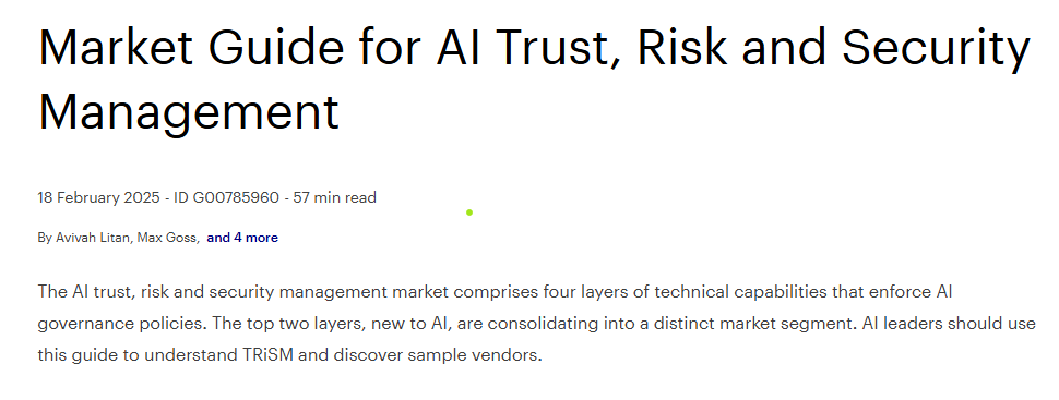 Gartner Market Guide for AI Trust, Risk and Security Management What do you need to secure AI use and deployment?