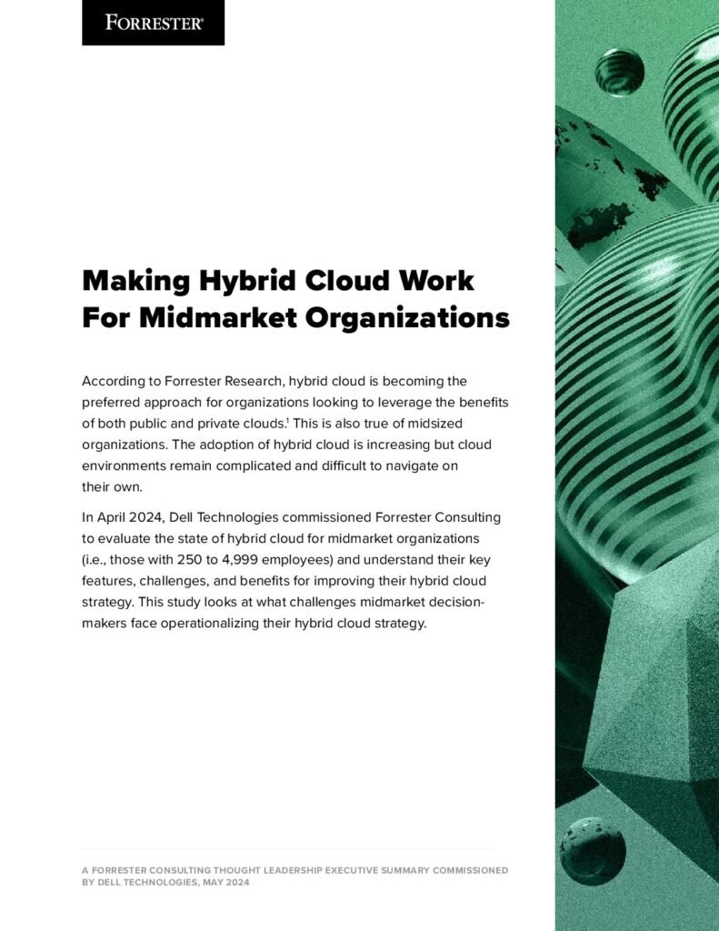 Making Hybrid Cloud Work For Midmarket Organizations In April 2024, Dell Technologies commissioned Forrester Consulting to evaluate the state of