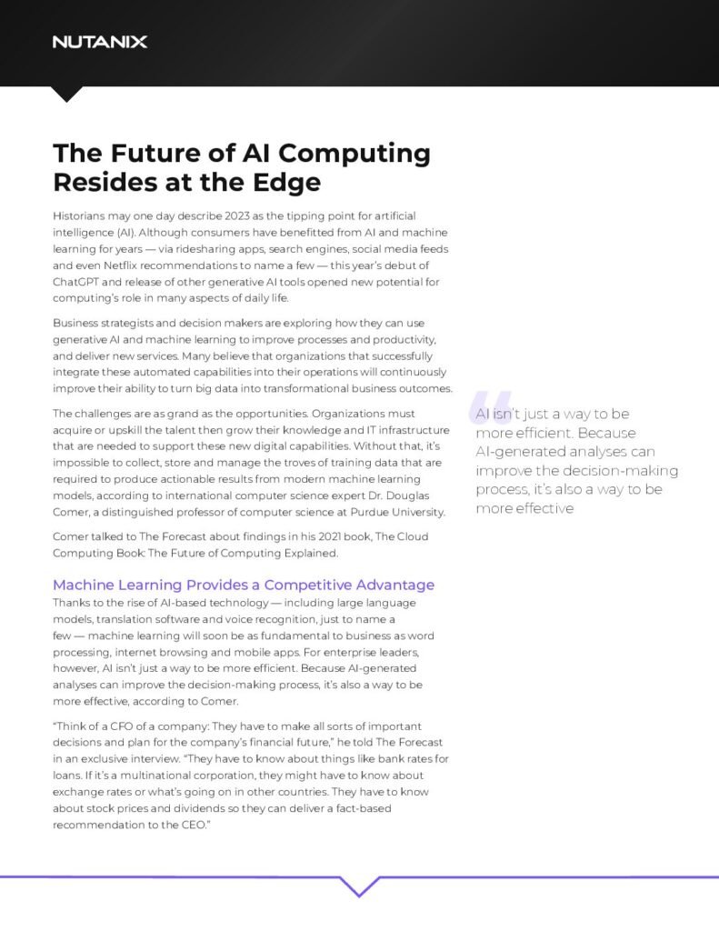 The Future of AI Computing Resides at the Edge Dr. Douglas Comer, a distinguished professor of computer science at Purdue