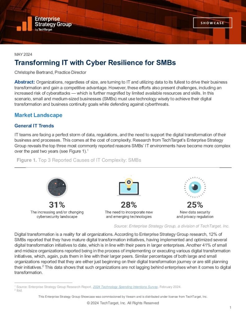 Transforming IT with Cyber Resilience for SMBs Small and medium-sized businesses (SMBs) face increasing challenges in a digital-first world, including