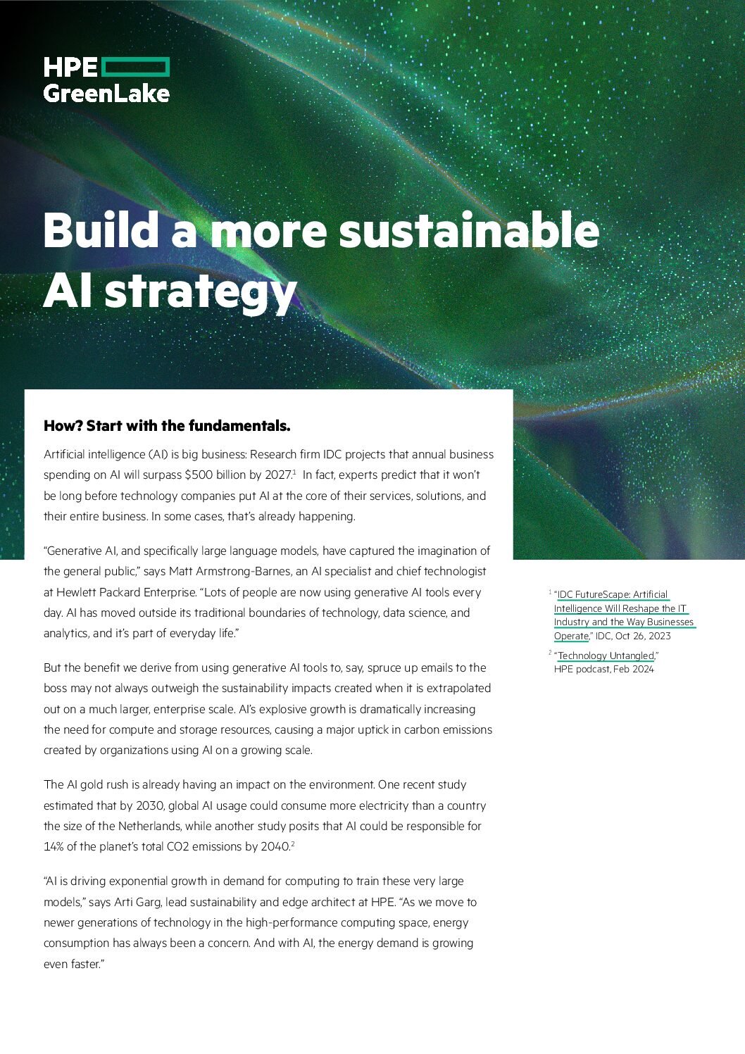 AI is big business. But it’s also having a big effect on our carbon emissions: The storage, cooling, and processing power required to train a large language model can produce as much CO2 as driving over a million miles in a family car. This article explores sustainable AI, and how making strategic decisions early in the design process – as well as proper data management – can help save your enterprise a fortune, and potentially reduce CO2 emissions.