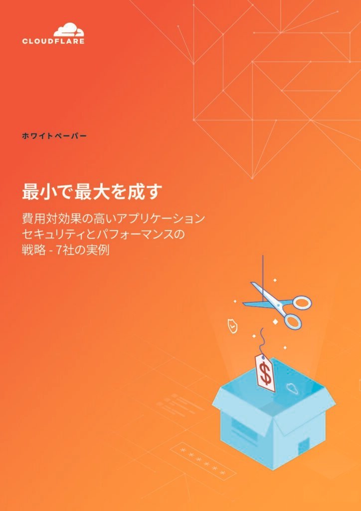 今後への期待:経済が不透明な時代に、より良いサイバーセキュリティ体制を構築する方法 企業は、先行きの不透明感が増す中、経済の不確実性に直面しています。予算の縮小に代表されるこのような不確実性は、CIOや技術リーダーに新たな道筋を見出すようプレッシャーを与えています。 幸いなことに、予算の再調整、効率化のためのプロセスの刷新、リソースの大幅な増加を伴わない計画的な成長の継続など、不安定な状況を乗り切るための戦略を立てたリーダーは、不確実な時代が終わった後も有利な立場に立てることがわかります。 このホワイトペーパーの内容: サイバーセキュリティ体制に取り組みながら、景況を乗り切る方法 リーダーのための、限られた予算内でビジネスのリスクを軽減する5つの方法 Cloudflareがインターネットにつながるあらゆるものの安全を支える仕組み 5989-Jp-Cost-effective application security and performance strategies from 7 companies ファーストネーム苗字Eメール会社名市国選んでください…オーストラリア中国インドネシア日本韓国マレーシアニュージーランドフィリピンシンガポールタイベトナム電話役職州 ートナーから電子メールや電話を通じてマーケティングコミュニケーションを受け取ることに同意したことになります。 Cloudflareが個人データをどのように使用および保護するかについては、Cloudflareのプライバシーに関する通知を参照してください。* ガイドを読む