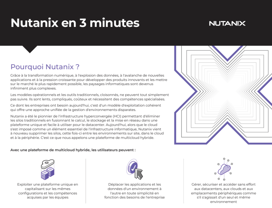 Nutanix en 3 minutes La transformation numérique a entraîné une explosion des applications d’IA et cloud-native, augmentant ainsi la complexité
