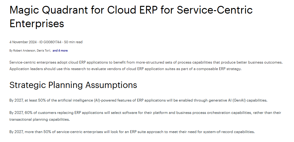 Gartner® Magic Quadrant™ for Cloud ERP for Service-Centric Enterprises Discover why Workday is a leader in 2024 Gartner® Magic Quadrant™