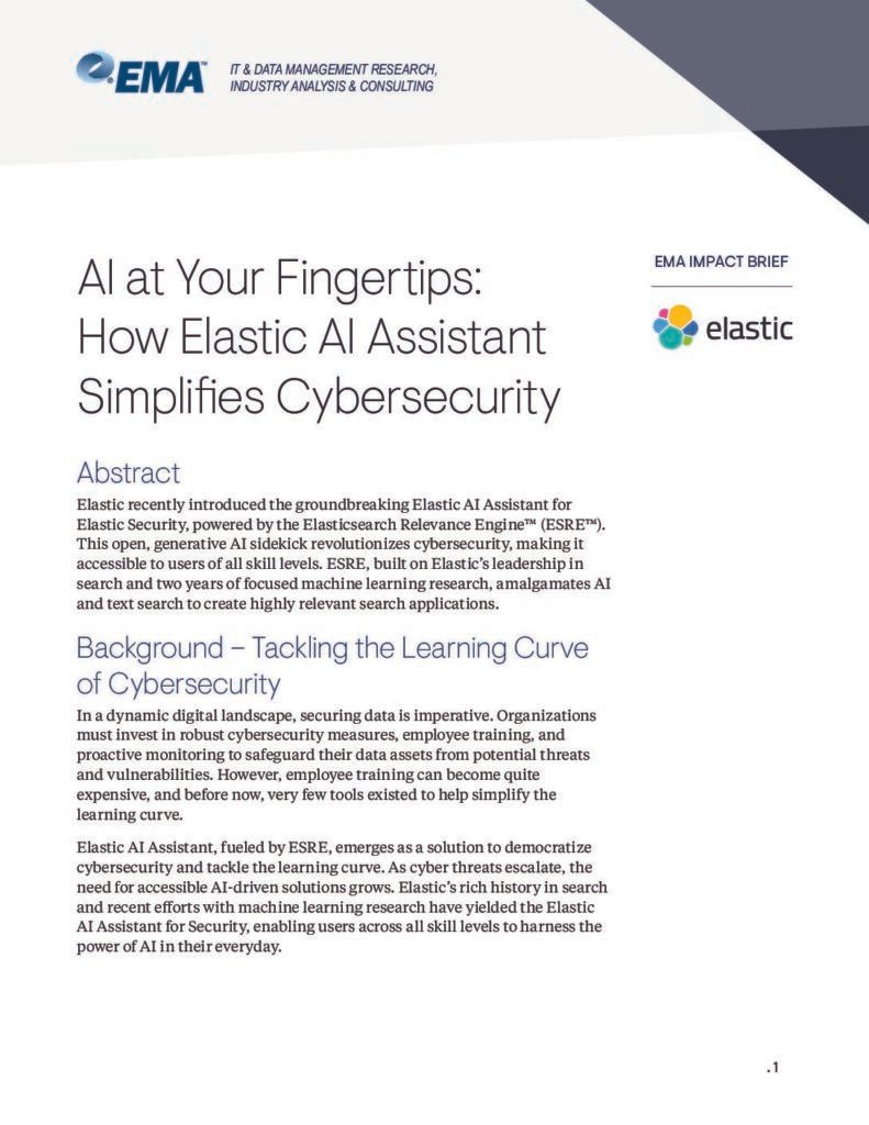 EMA: AI at your fingertips: How Elastic AI Assistant simplifies cybersecurity AI assistants for cybersecurity use cases are a force-multiplier