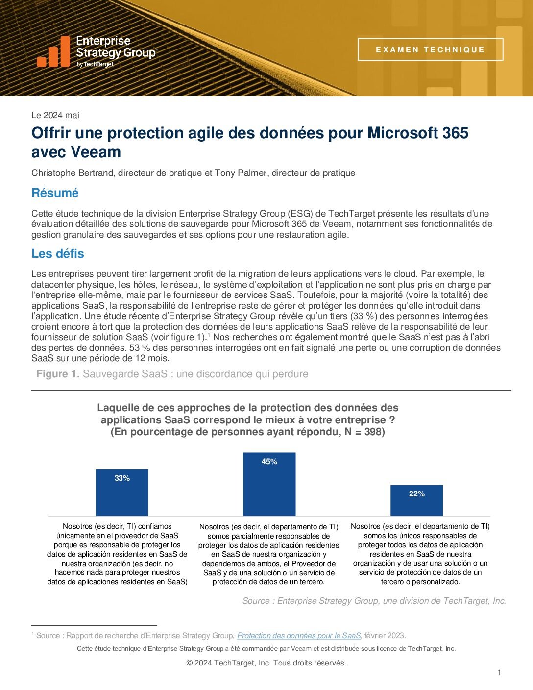 Microsoft 365 est essentiel aux opérations des entreprises, mais la protection de ses données relève de la responsabilité des organisations, et non du fournisseur de services. Ce rapport d’Enterprise Strategy Group explore les solutions complètes de Veeam pour protéger les données de Microsoft 365. Découvrez comment Veeam Data Cloud simplifie la protection avec une infrastructure gérée et un stockage illimité, tandis que Veeam Backup offre un contrôle total et des options de personnalisation pour les environnements sur site et cloud.