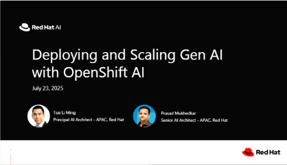 Take your Generative AI to the next level in this one-hour webinar demo on OpenShift AI. Discover how to deploy, manage, and scale your LLMs across hybrid cloud environments with ease and efficiency. We’ll explore vLLM for lightning-fast, memory-efficient inference, plus strategies to optimize resources and ensure production-ready performance. Ideal for those looking to bridge development and deployment, this session shows how OpenShift AI delivers flexibility and power—turning your RHEL AI creations into real-world solutions.
