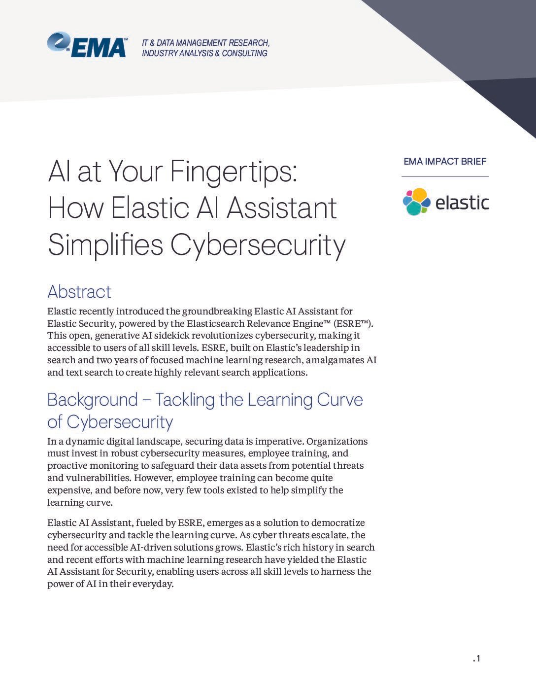 See why EMA says Elastic AI Assistant “revolutionizes cybersecurity” in this report.