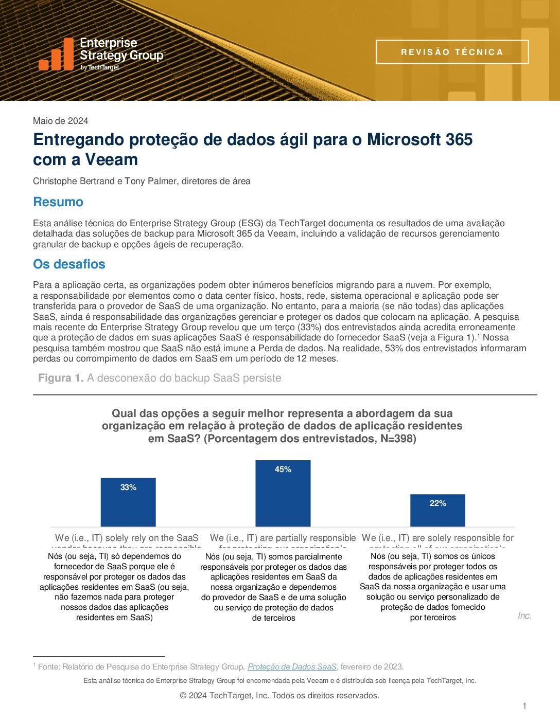Leia análise técnica aprofundada da ESG sobre as soluções de backup para Microsoft 365 da Veeam, destacando o gerenciamento validado de backups granulares e as opções ágeis de recuperação.