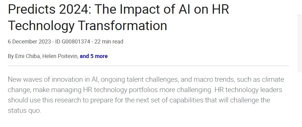 “New waves of innovation in AI, ongoing talent challenges, and macro trends, such as climate change, make managing HR technology portfolios more challenging. HR technology leaders should use this research to prepare for the next set of capabilities that will challenge the status quo.”
