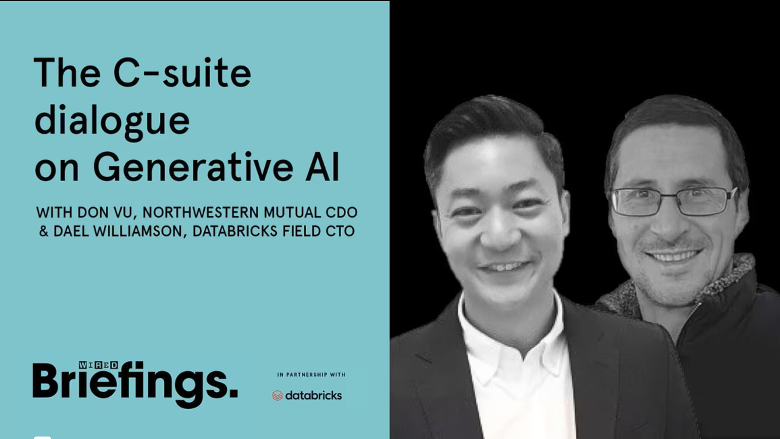 Don Vu, CDO de Northwestern Mutual, une entreprise de services financiers du Fortune 100, rejoint Dael Williamson, CTO Field chez Databricks, et Grace Browne, journaliste chez Wired, pour discuter de l’IA générative et de son impact à l’échelle de l’entreprise.