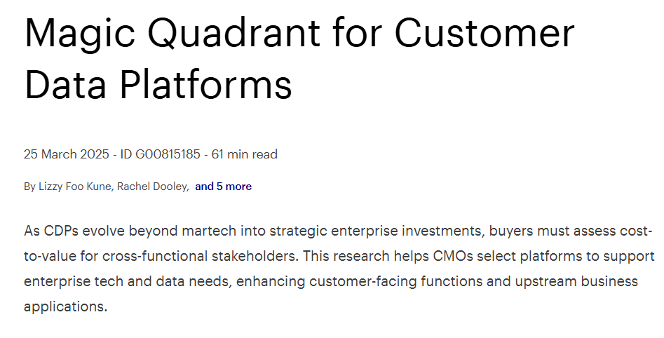 Get the 2025 Gartner Magic Quadrant for Customer Data Platforms to learn why: