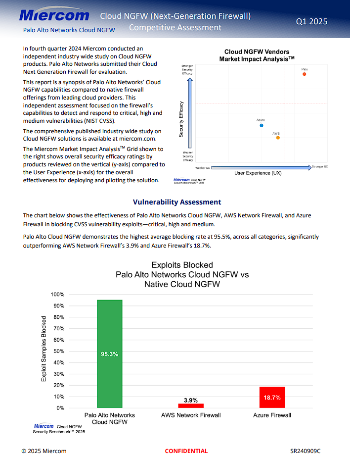 See how Cloud NGFW outperforms cloud-native firewalls in this unsponsored independent Miercom competitive review.