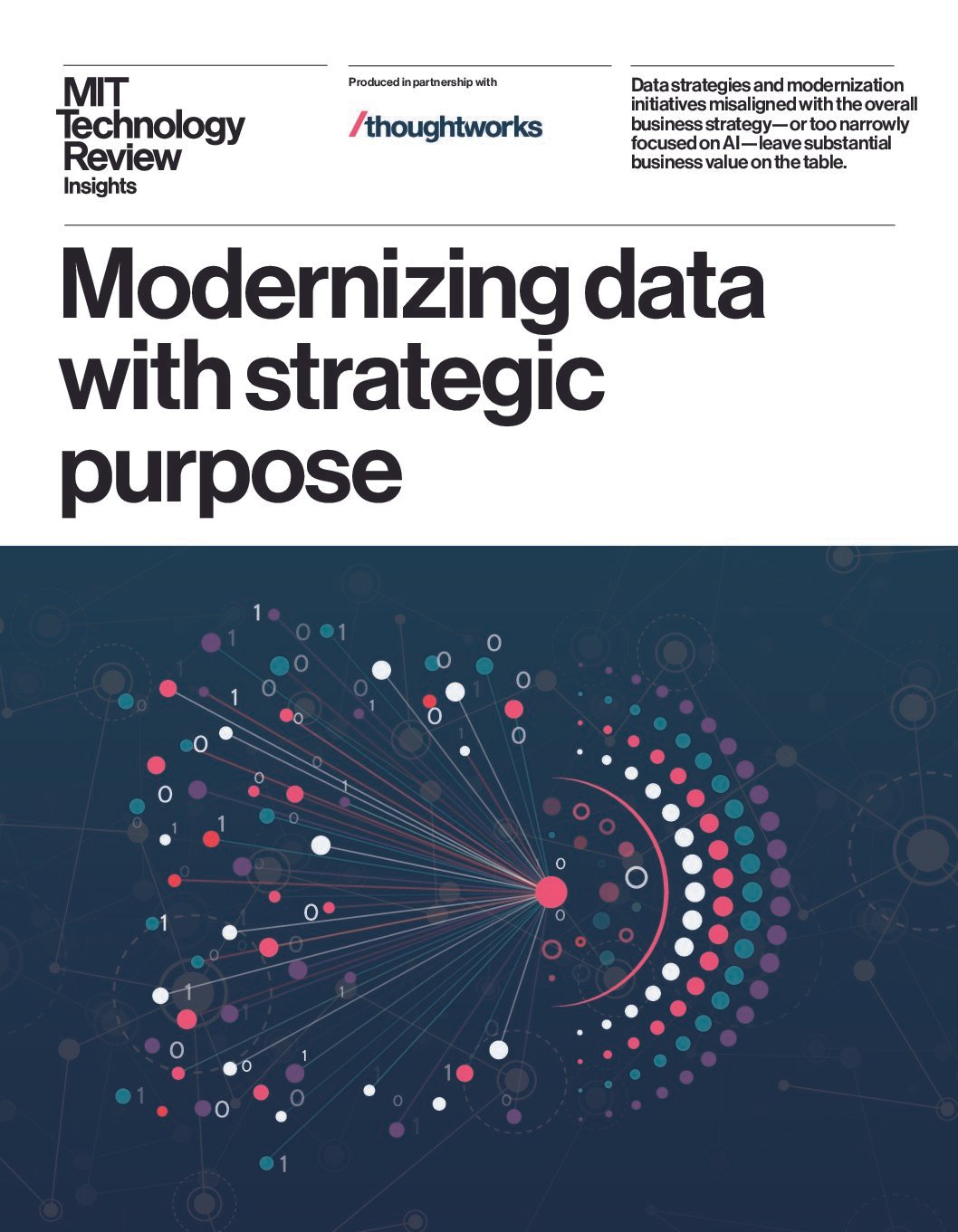 Thoughtworks recently collaborated with MIT Technology Review Insights to find out how 350 data leaders across a variety of industries are approaching their data modernization journeys – key themes explored included key objectives of modernization and potential benefits, developing a vision and strategy, common impediments and how to address them, and gaining organizational alignment and business buy-in.