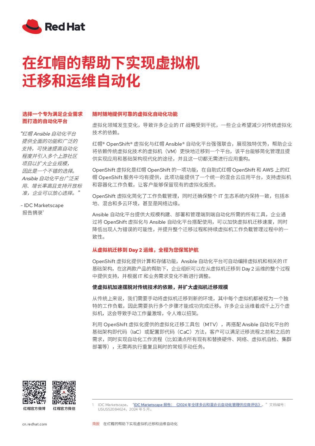 立即下载白皮书,了解如何利用 Red Hat 解决方案加速您的虚拟化现代化进程!