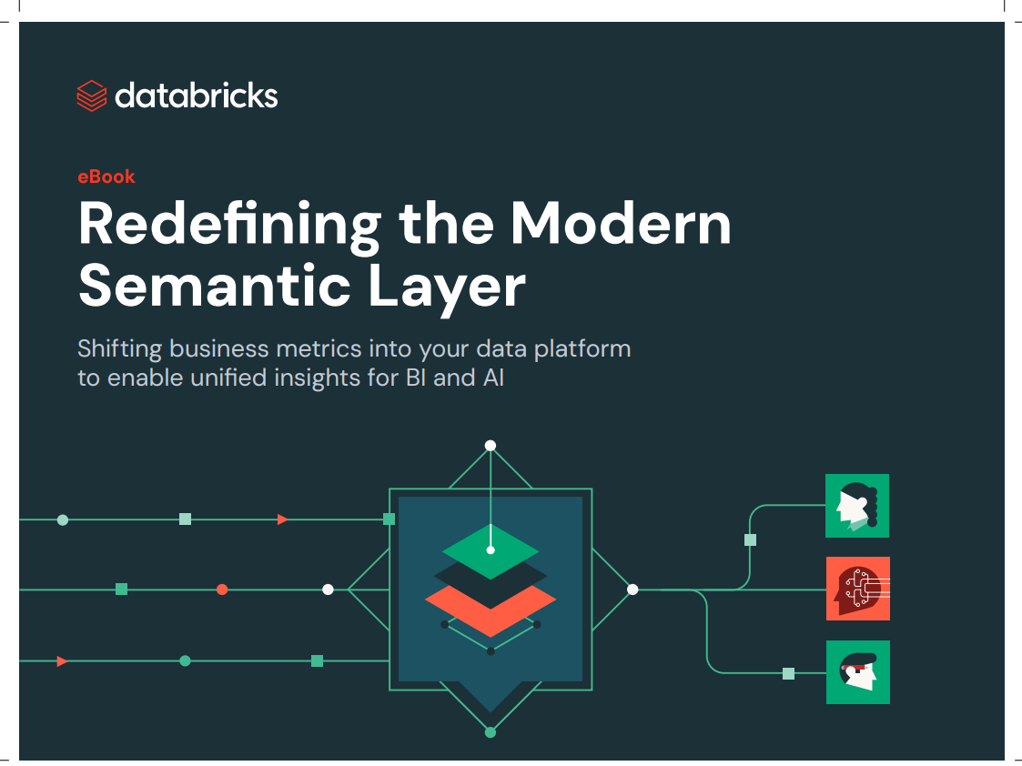 This eBook introduces modern business semantics on the Databricks Data Intelligence Platform. It explains what they are, why they matter and how to implement them. You’ll learn how leading organizations are shifting their metric definitions into the Databricks Platform through Unity Catalog to create a shared, trusted foundation for insights.