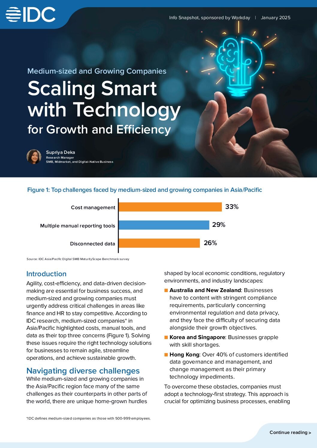 Agility, cost-efficiency, and data-driven decision-making are essential for business success, and medium-sized and growing companies must urgently address critical challenges in areas like finance and HR to stay competitive. Read this info snapshot by IDC to learn how growing companies can navigate challenges and turn it into opportunities with technology.