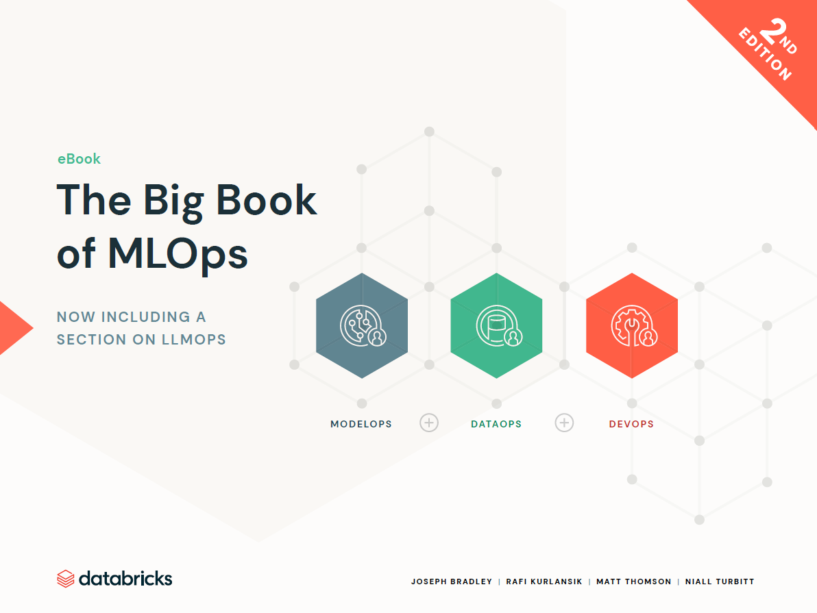Discover the latest strategies for deploying generative AI and machine learning models efficiently. The Big Book of MLOps covers how to collaborate on a common platform using powerful, open frameworks such as Delta Lake for data pipelines, MLflow for model management (including LLMs) and Databricks Workflows for automation.