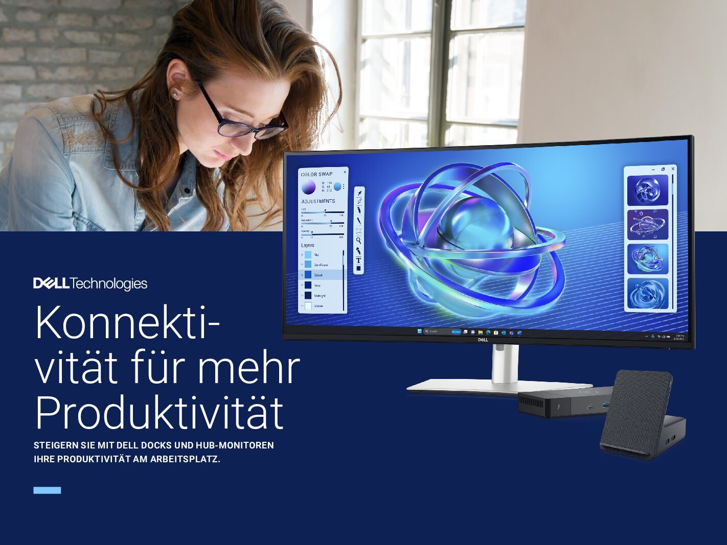 Verbinden Sie sich mit Produktivität – Steigern Sie die Produktivität überall dort, wo gearbeitet wird, mit Dell Docks und Hub Monitor