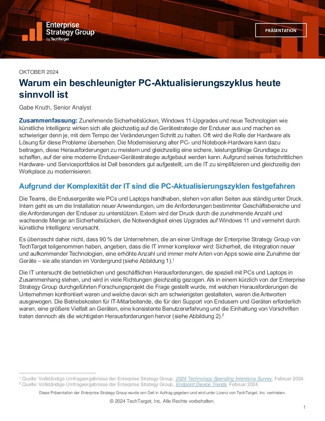 Zunehmende Sicherheitslücken, Windows 11-Upgrades und neue Technologien wie künstliche Intelligenz beeinflussen gleichzeitig die Gerätestrategie. Dadurch wird es schwieriger denn je, mit dem rasanten Wandel Schritt zu halten. Die Rolle der Hardware als Lösung für diese Probleme wird oft übersehen. Die Modernisierung alter PC- und Laptop-Hardware kann helfen, diese Herausforderungen zu meistern und gleichzeitig eine sichere, leistungsstarke Grundlage für eine moderne Gerätestrategie zu schaffen. Dank seines fortschrittlichen Hardware- und Serviceportfolios ist Dell besonders gut aufgestellt, um die IT zu vereinfachen und gleichzeitig den Arbeitsplatz zu modernisieren.