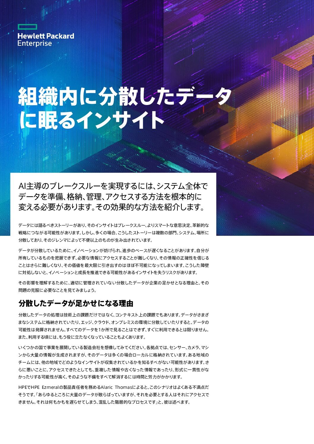 たった今、組織にとって最も価値のあるインサイトは、それを必要とするチームやツールから隠されていて、遠く離れた場所に眠っているかもしれません。しかし、インサイトをそこに留めておくべき理由などありません。統合されたAI対応のデータ基盤により、障壁を取り除き、時間のかかるタスクを自動化し、今日の最も大掛かりなプロジェクトの要求を満たすように拡張できます。その結果、データの品質だけでなく意思決定の質も向上し、イノベーションが加速され、業界での競争優位性が高まります。データの可能性を最大限に活用するチャンスは、思っているよりも近くにあります。