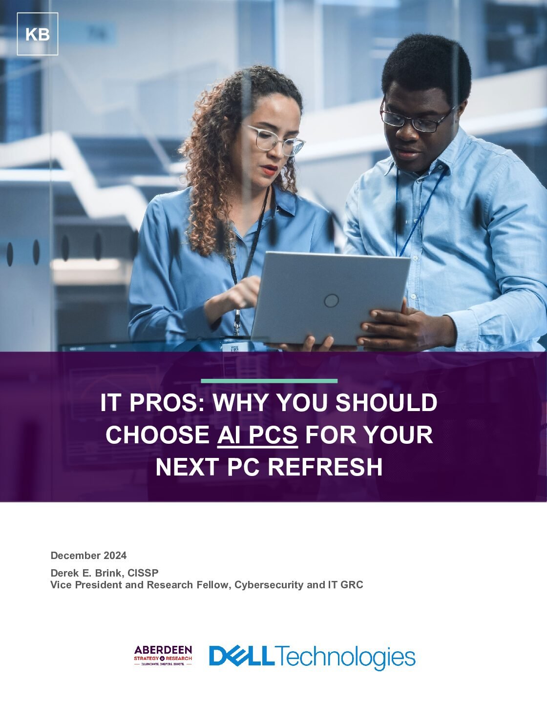This knowledge brief highlights that choosing an AI PC over a traditional PC has advantages in several areas, including cybersecurity and compliance, technology, user enablement and convenience, business enablement, stategic value, and overall cost.